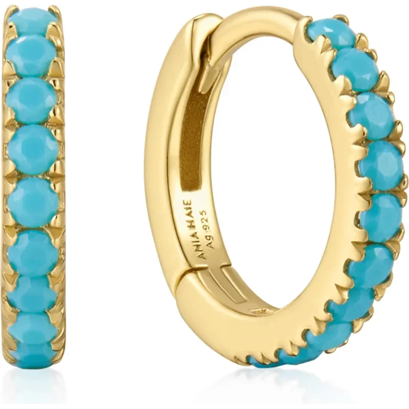 ANIA HAIE GOLD AQUA BLUE ROW HUGGIE HOOP EARRINGS E073-03G