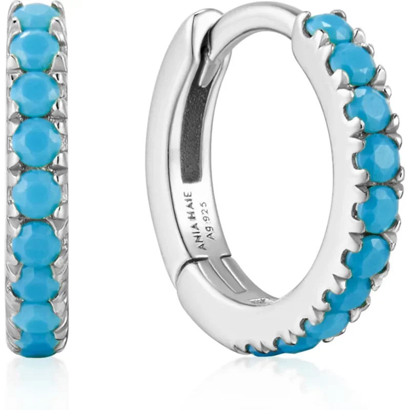 ANIA HAIE SILVER AQUA BLUE ROW HUGGIE HOOP EARRINGS E073-03H