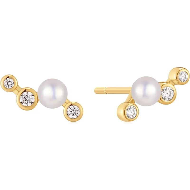 ANIA HAIE GOLD ZIG-ZAG SHELL PEARL STUD EARRINGS E074-11G